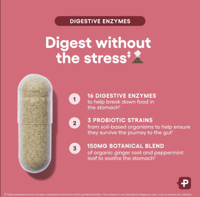 16 powerful enzymes help break down proteins, carbs, fatsand more, while working alongside soil-based probiotics anoprebiotics to promote healthy digestion and relief fromdigestive discomfort.
